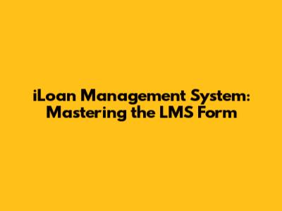 ILoan Management System: Mastering The LMS Form