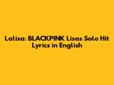 Lalisa: BLACKPINK Lisa's Solo Hit Lyrics In English