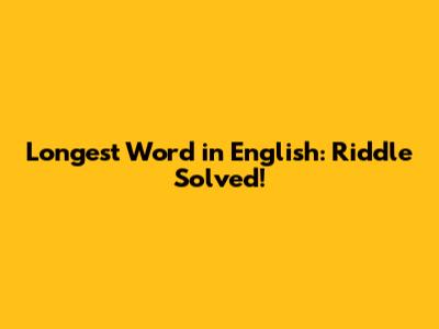 Longest Word In English: Riddle Solved!