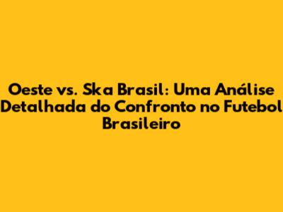 Oeste Vs. Ska Brasil: Análise Completa E Expectativas
