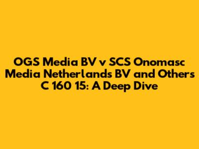 Let's break down this complex legal case, OGS Media BV v SCS Onomasc Media Netherlands BV and Others C 160 15. It sounds like a mouthful, right? But don't worry, we're going to unpack it in a way that's easy to understand. This case, adjudicated within the Netherlands' legal system, likely revolves around disputes concerning media rights, contractual obligations, and potentially intellectual property. The involvement of multiple parties, as indicated by "and others," suggests a multifaceted conflict with various stakeholders. Understanding the core issues at stake—such as licensing agreements, distribution rights, or copyright infringements—is crucial to grasping the full implications of the ruling. We'll explore possible scenarios that could lead to such legal battles and analyze the potential ramifications for the media industry in the Netherlands and beyond. Cases like these often set precedents that influence how media companies operate and protect their assets. So, buckle up as we dissect the key elements of this intriguing legal showdown and reveal what makes it significant.