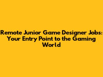 Remote Junior Game Designer Jobs: Get Started