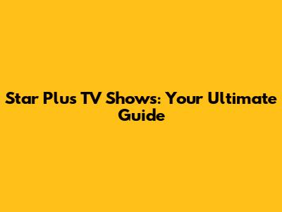 Star Plus TV Shows: Your Ultimate Guide