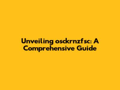 Unveiling Osckrnzfsc: A Comprehensive Guide